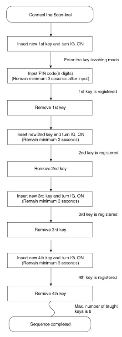 If the PCM(ECM) status and the key status do not match for teaching of keys, the tester procedure will be stopped and a specific fault code will be stored at PCM(ECM).