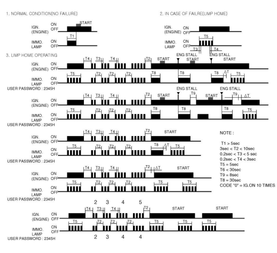 If the PCM(ECM) detects the fault of the SMARTRA or transponder, the PCM(ECM) will allow limp home function of the immobilizer. Limp home is only possible if the user password (4 digits) has been given to the PCM(ECM) before. This password can be selected by the vehicle owner and is programmed at the service station.