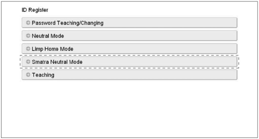 (Refer to the Things to do when Key & PIN Code the PCM(ECM) can be set to the "neutral" status by a scanner. If wrong vehicle specific data have been sent to SMARTRA three times continuously or intermittently, the SMARTRA will reject the request to enter neutral mode for one hour. Disconnecting the battery or other manipulation cannot reduce this time. After connecting the battery the timer starts again for one hour.