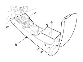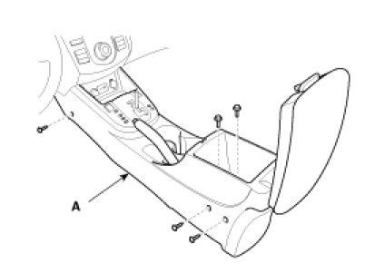 3. After loosening the console mounting screws, remove the floor console assembly (A).