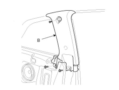 4. After loosening the mounting screw, then remove the rear pillar trim (B).