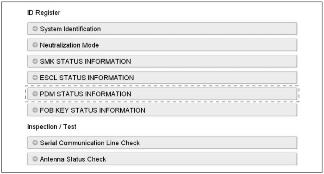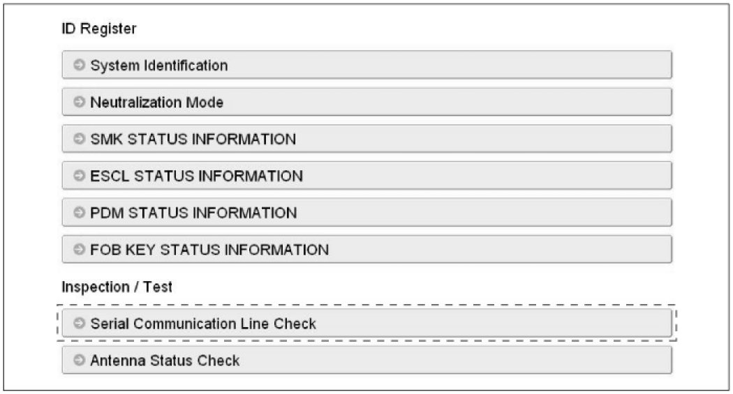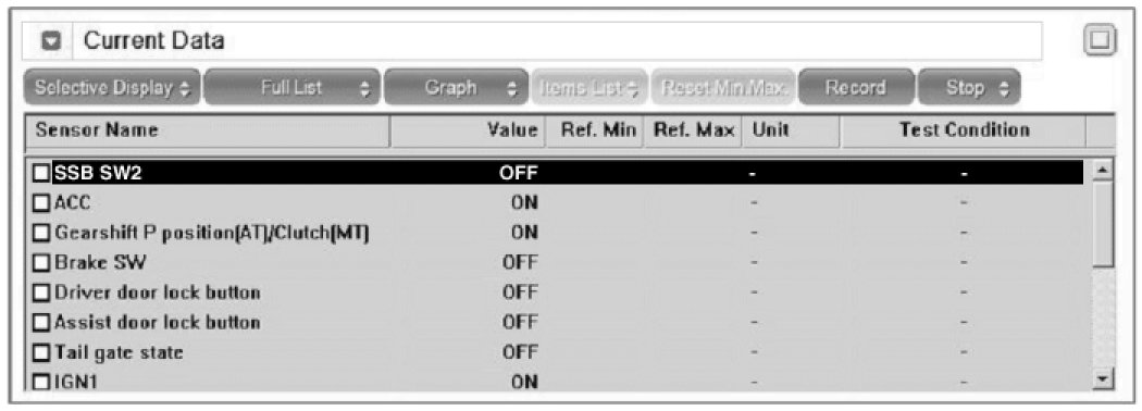 Smart key system defects can be quickly diagnosed with the GDS. GDS operates actuator quickly to monitor, input/output value and self diagnosis.
