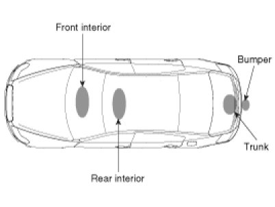 4. Set the smart key in the following shade area and actuate the antenna. Check the LED of smart key is blinking.