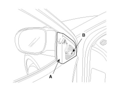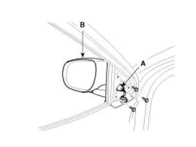 3. After disconnecting the connector (A), remove the outside rear view mirror (B).
