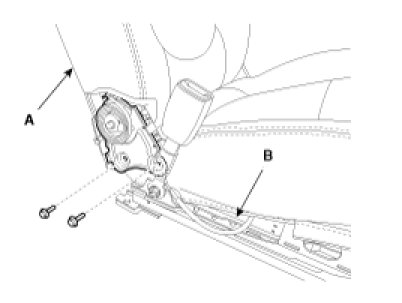 4. After loosening the mounting bolts, then disconnect the seat back (A) and seat cushion (B).