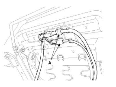 2. Disconnect the connectors (A), and remove the seat assembly.