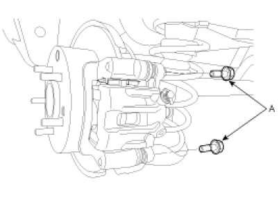 1. Loosen the guide rod bolt (B) and pivot the caliper up out of the way.