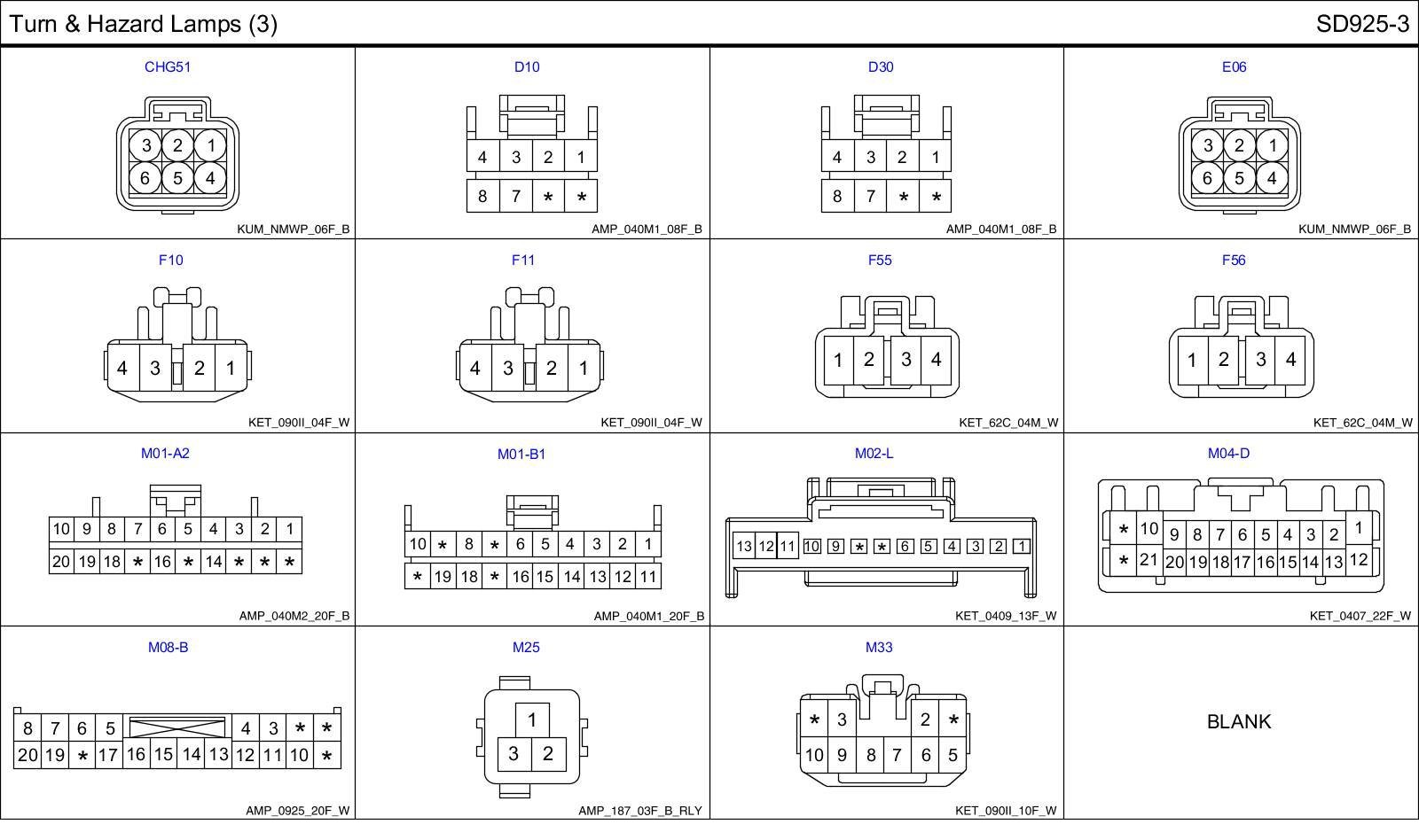 Turn & Hazard Lamps (3) Connector Pin Outs: