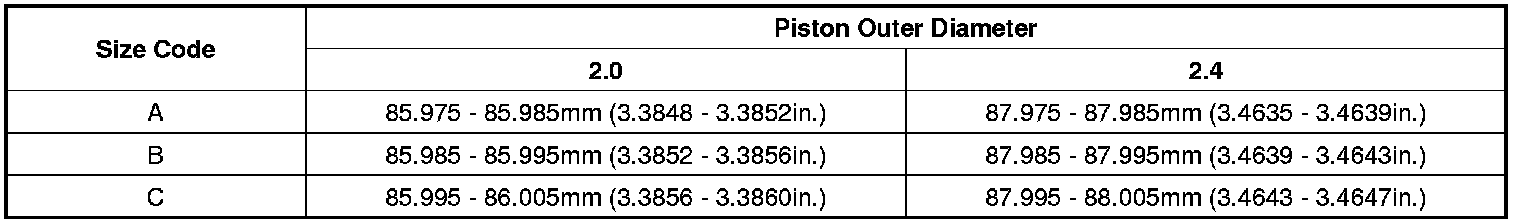 - When replace the piston pin, check the piston pin outer diameter and connecting rod small end inner diameter as below.