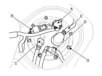 Remove the mounting nuts (G), and then remove the fuel pump [ULEV].
