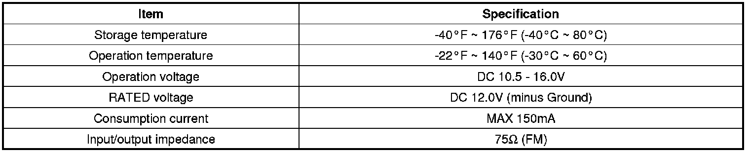 Specifications (Without SIRIUS)