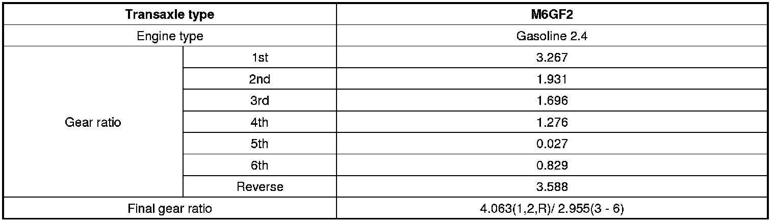 Manual Transmission/Transaxle: Application and ID: Specifications
