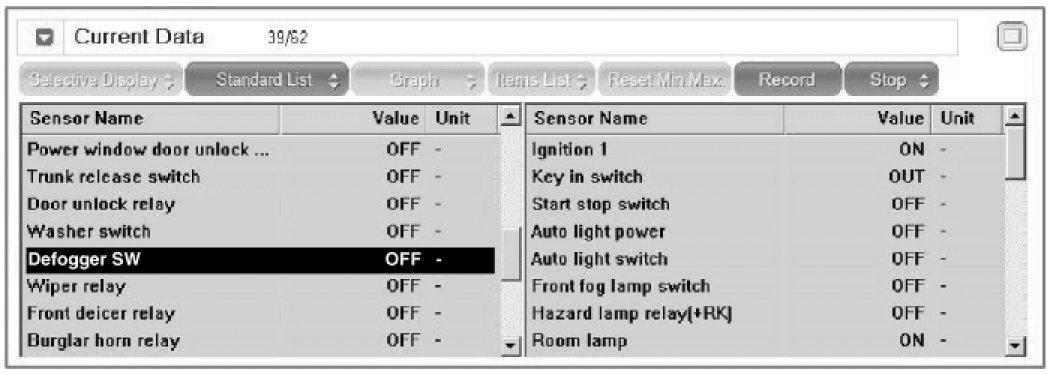 1. The rear window defogger switch inputs can be checked using the GDS.