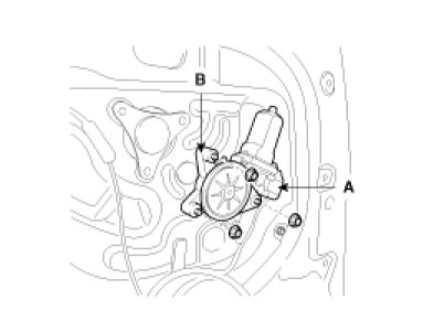 4. After disconnecting the connector (A), unbolt motor, remove the power window motor (B).