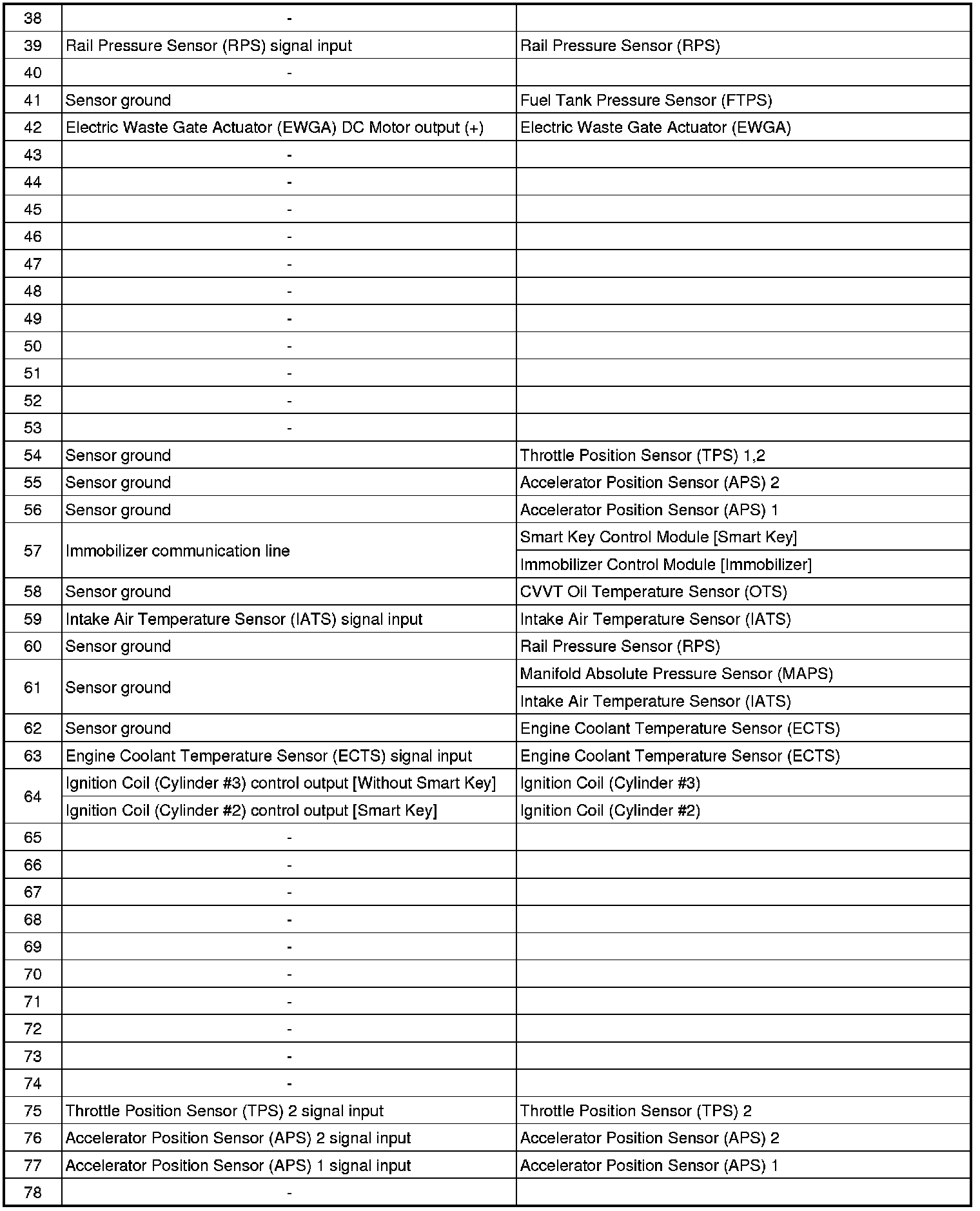 ECM Terminal Input/ Output signal