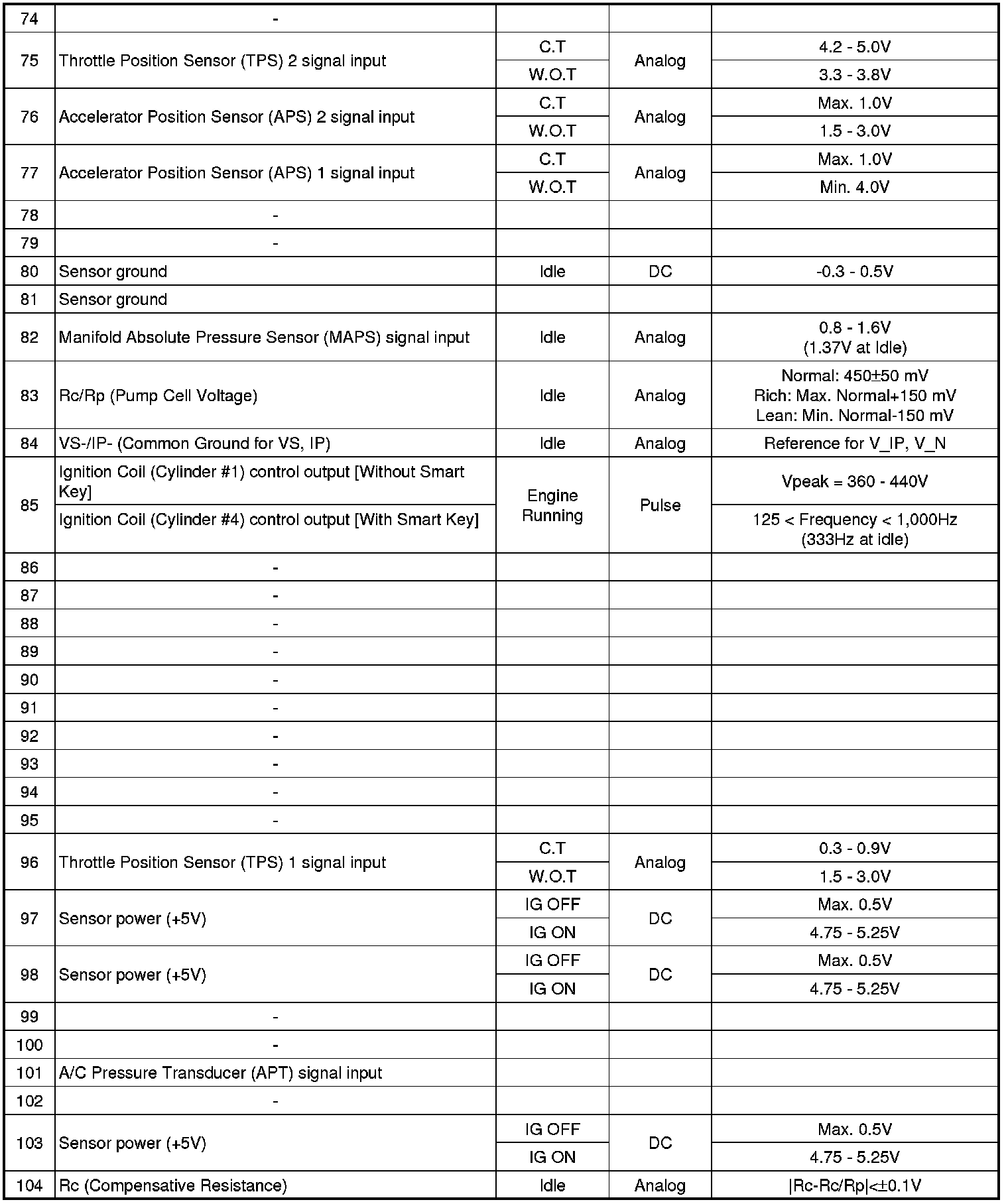 ECM Terminal And Input/Output signal