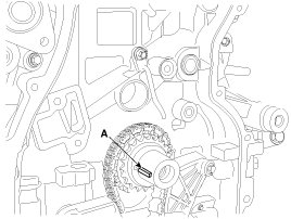 5. Install the timing chain. To install the timing chain with no slack between each shaft (cam, crank), follow the below procedure.