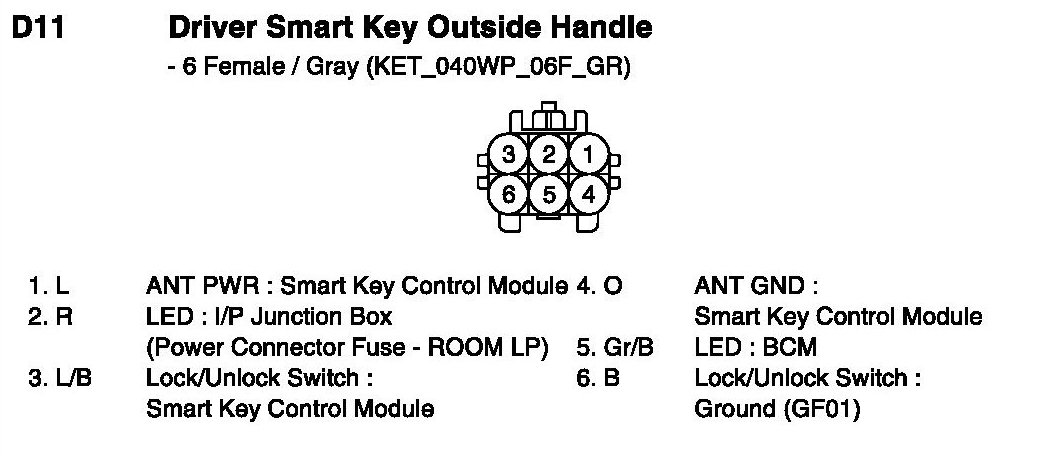 D11 Driver Smart Key Outside Handle: