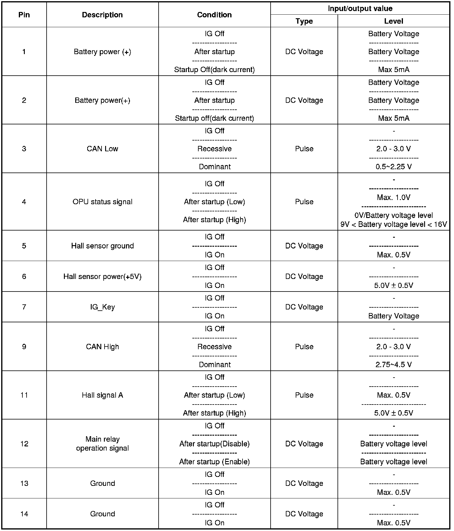 OPU Terminal input/ output signal