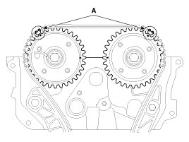 (2) Mark the timing chains (A) on the timing marks of the CVVT sprockets.