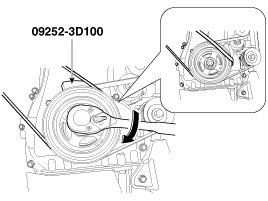 Use the SST (09231-3D100, 09231-3D200) to install the crankshaft pulley bolt.