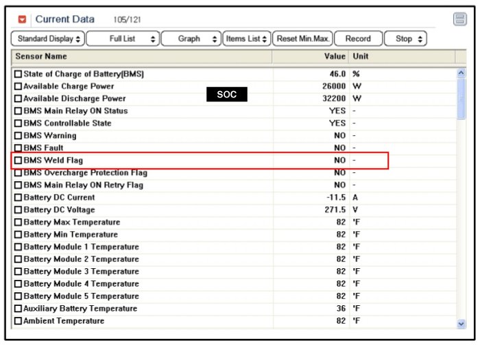 3. Check the BMS weld damage state in the GDS service data.