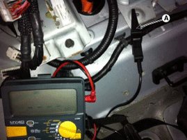 4. Connect the insulation tester (-) terminal (A) to the battery system case (or ground).
