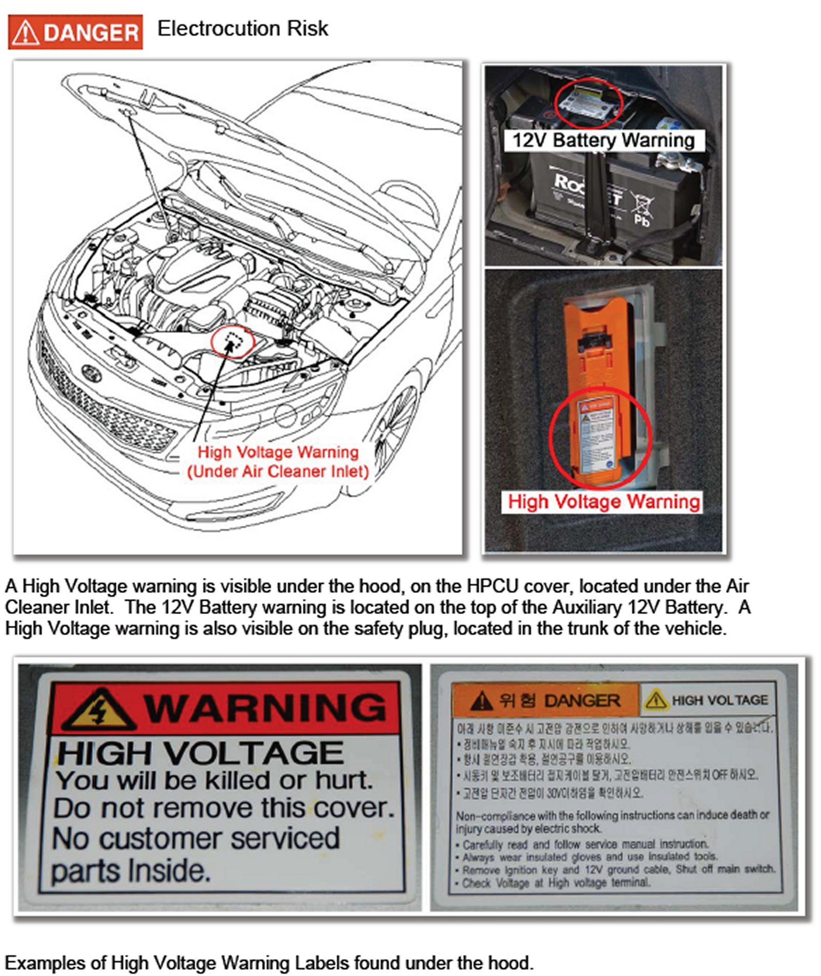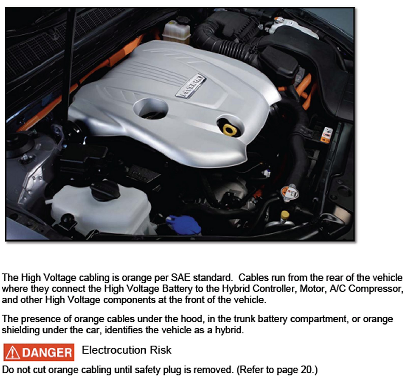 The Kia Optima Hybrid is built on the conventional four-door Optima chassis and therefore the sedan looks very similar to its conventional counterpart with a few notable exceptions. The safest method is to assume that any Optima you respond to is a Hybrid until proven otherwise. Using the information provided in this section, responders will be able to differentiate between the two.