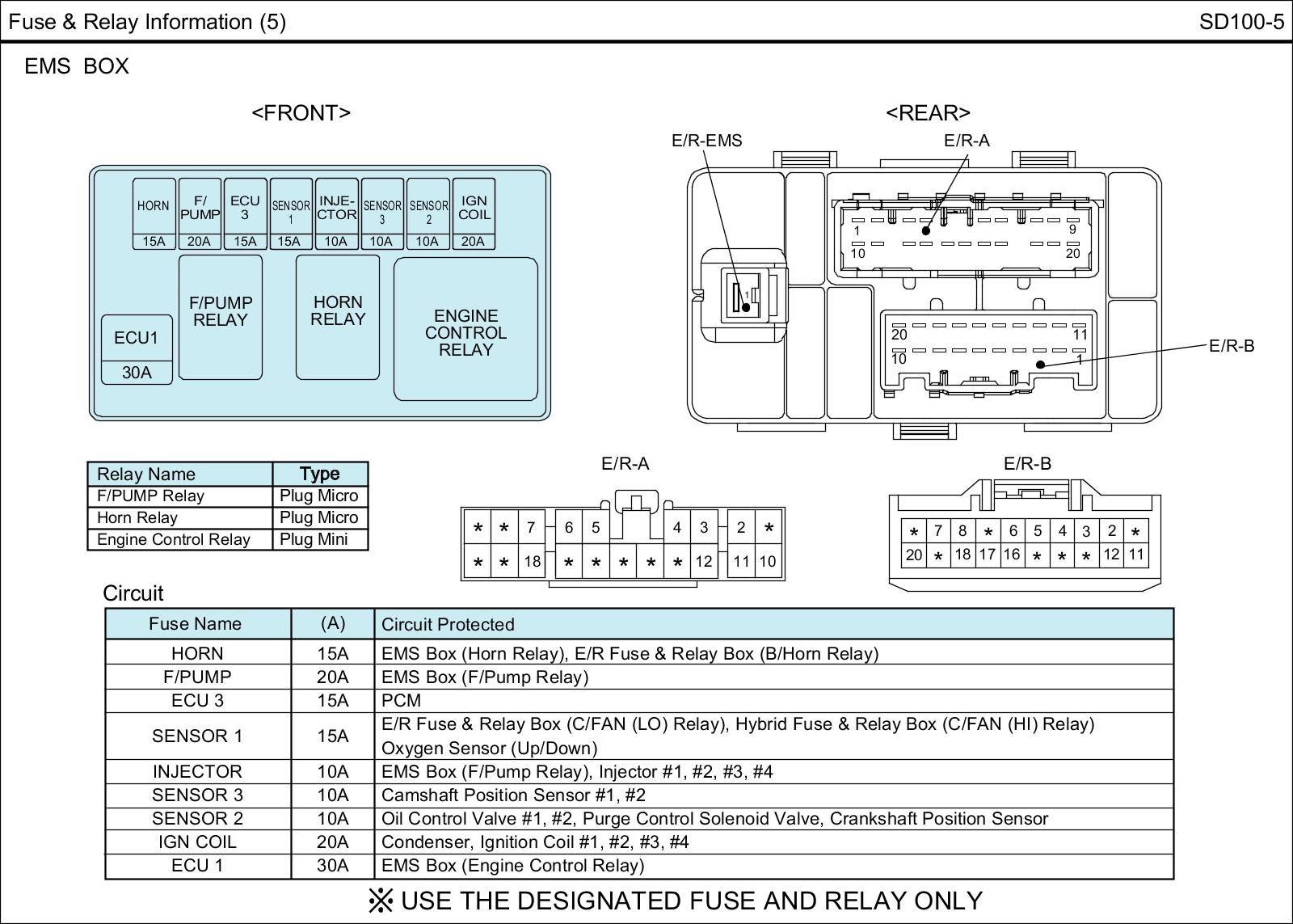 E/R Fuse & Relay Box Circuit Details: