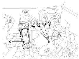 6. Pull up the lock of the HECU connector (C), and then disconnect the connector.