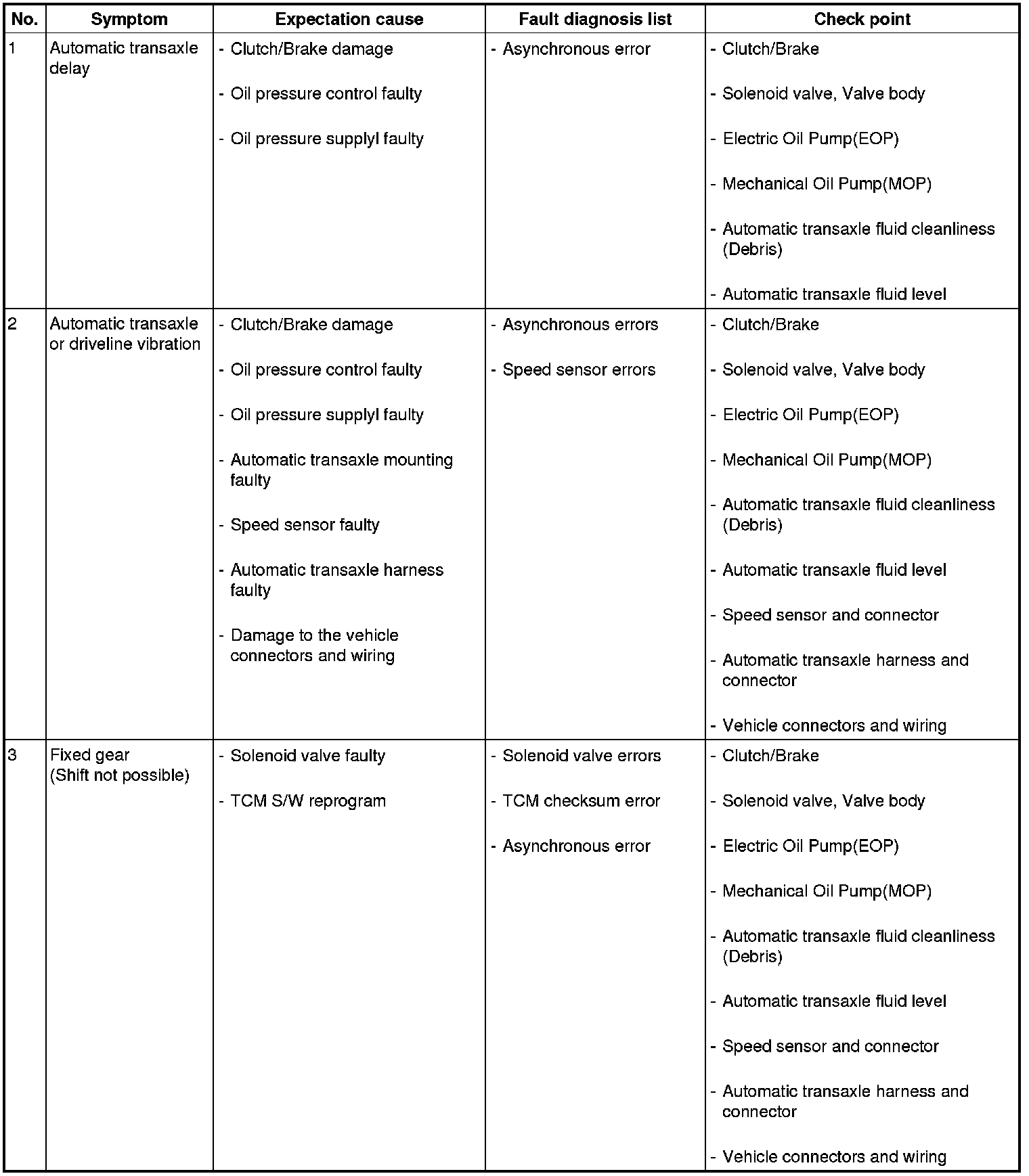 Automatic Transmission/Transaxle: Testing and Inspection