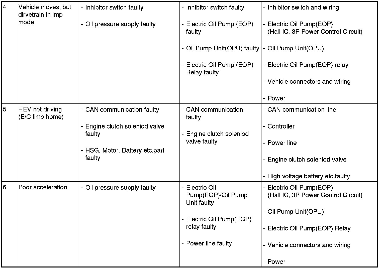 HEV 6th according to symptoms hardware failure criteria