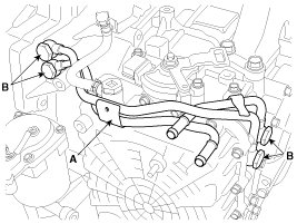 5. Remove the AT tube (A) after removing eye bolt (B).
