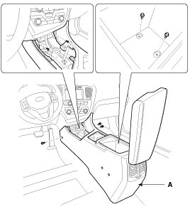 7. After loosening the mounting screws and bolts, then remove the floor console assembly (A).