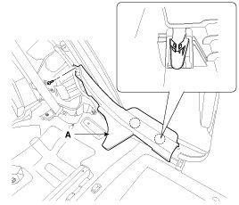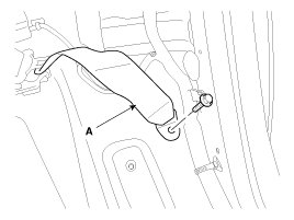 2. After loosening the mounting bolt, then remove the rear seat belt lower anchor (A).