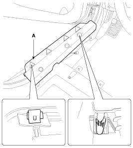 1. Using a screwdriver or remover, remove the front door scuff trim (A).