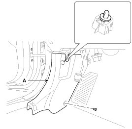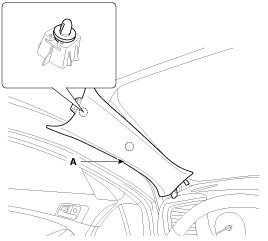 1. Using a screwdriver or remover, remove the rear pillar trim (A).