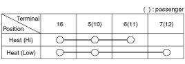 4. Operate each seat heater switch and check that continuity exists between the terminals.
