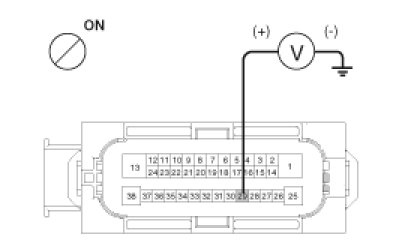 1. Disconnect the instrument cluster connector (M08) and turn the ignition switch ON.
