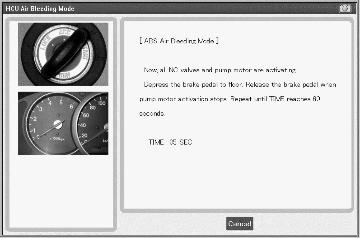 You must obey the maximum operating time of the ABS motor with the GDS to prevent the motor pump from burning.