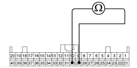2. Measure the resistance between terminal (M08) 29 and 30 of the cluster harness side connector.