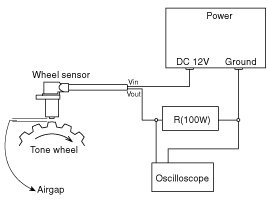 2. Compare the change of the output voltage of the wheel speed sensor to the normal change of the output voltage as shown below.