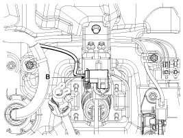 1. Disconnect the stop lamp switch connector (B).