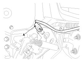 2. Adjust the adjusting nut(A) for parking brake pedal stoke 4 - 5 notches when operating effort is 196N(20kgf, 44lbf)