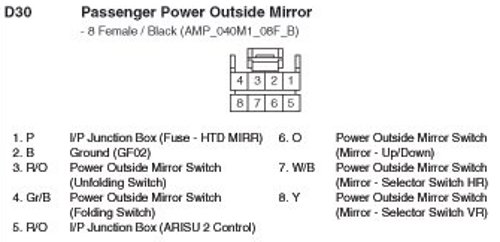 D30 Passenger Power Outside Mirror: