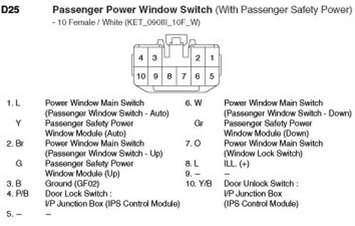 D25 Passenger Power Window Switch (With Passenger Safety Power):