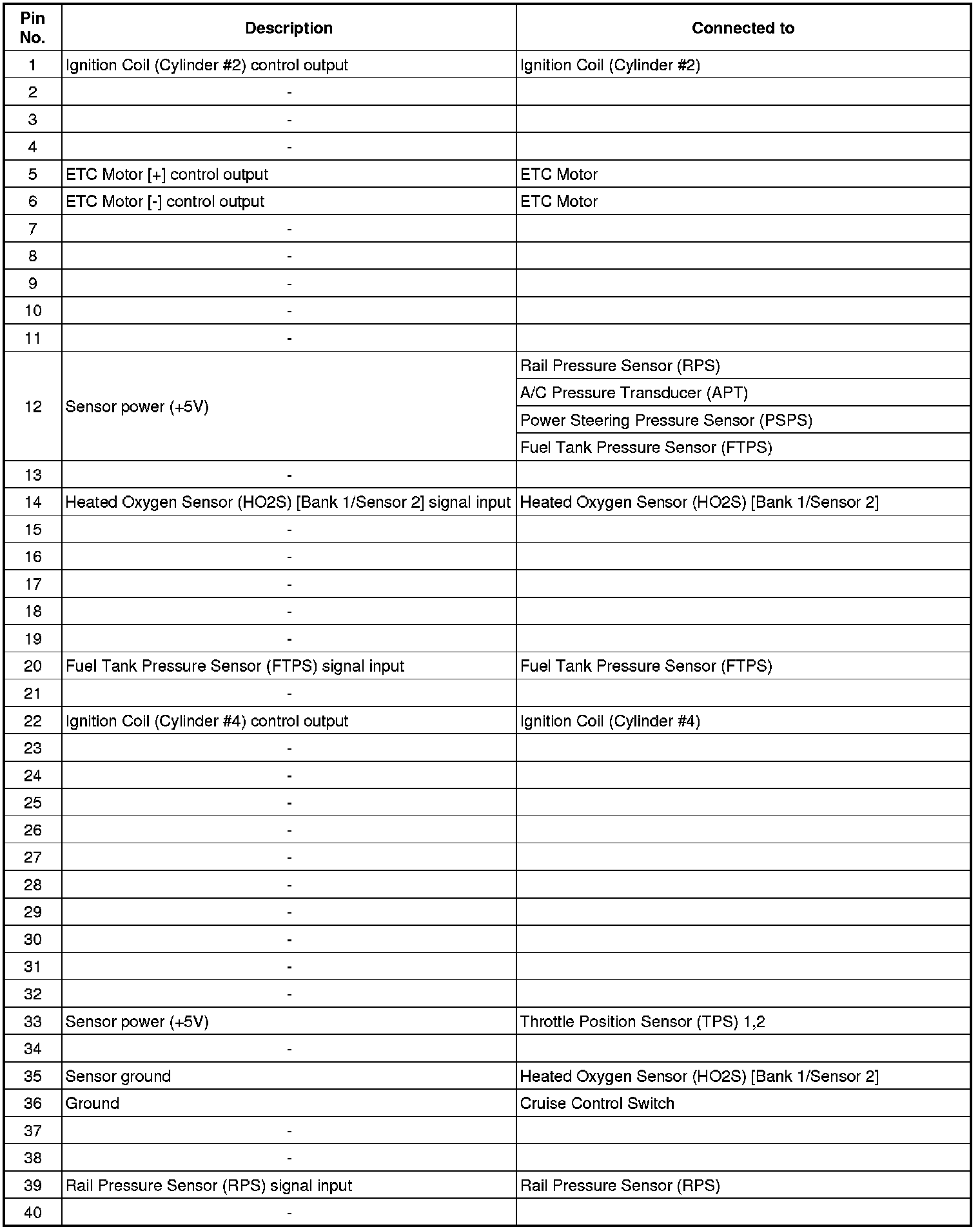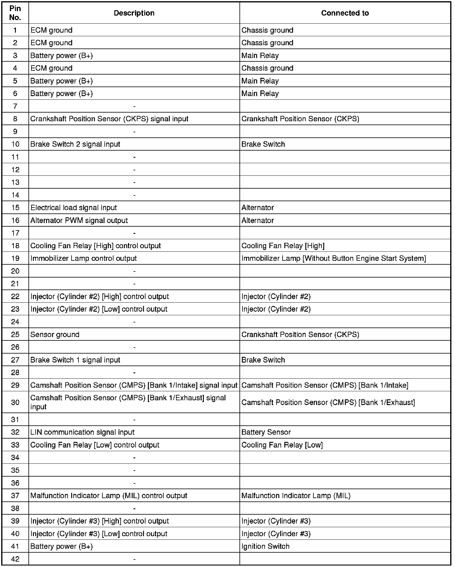 ECM Terminal And Input/Output signal