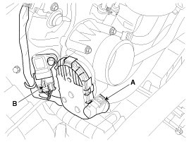 8. Disconnect the ETC (Electronic throttle control) connector (A) and MAPS (Manifold absolute pressure sensor) & IATS (Intake air temperature sensor) connector (B).