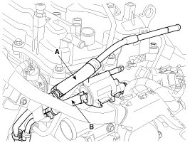 10. Disconnect the vacuum hose (A) and PCSV (Purge control solenoid valve) hose (B).