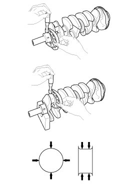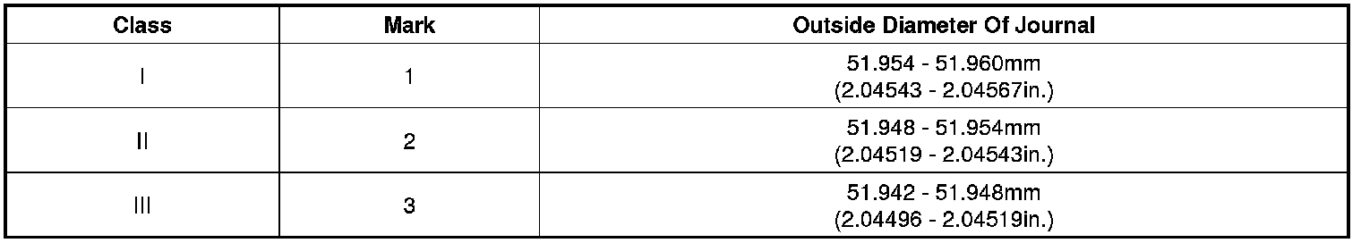 If the proper clearance cannot be obtained by using the appropriate larger or smaller bearings, replace the crankshaft and start over.